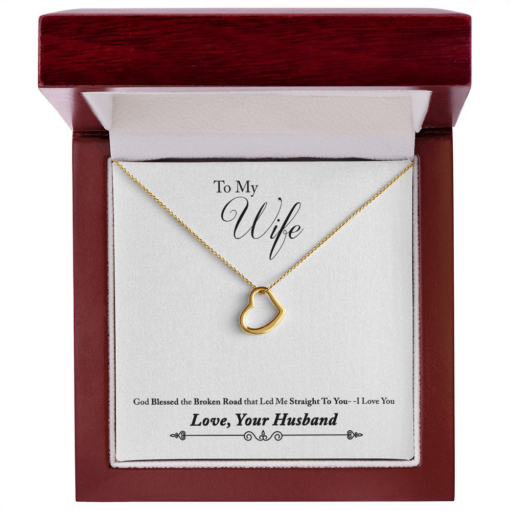 Imagine her delight when she sees this beautiful Delicate Heart Necklace, lovingly crafted in sterling silver and dipped in 14k white gold or 18k yellow gold for added luxury. This piece is pure elegance wrapped up in timeless simplicity. Trends may come and go, but this piece will last a lifetime with its classic subtle beauty.